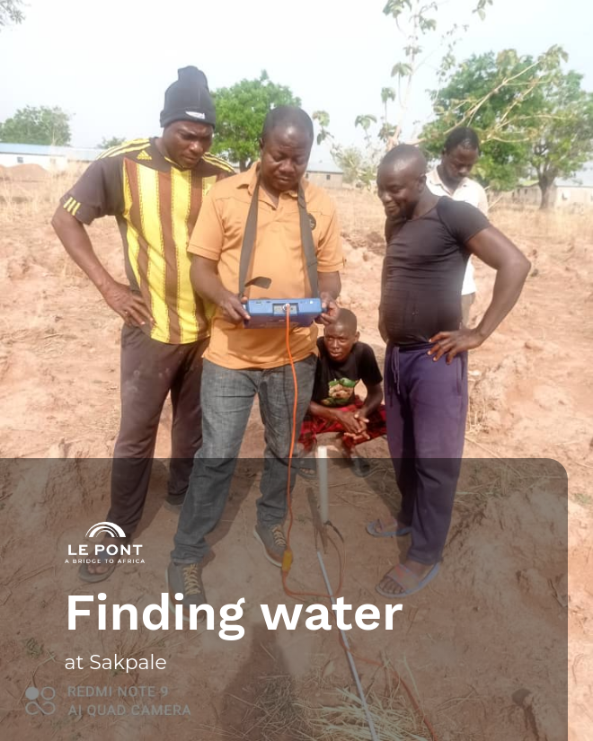The team then traveled northward to Sakpale, a village of 800. Women and girls walk 6 miles daily to a river to fetch water. Waterborne disease is rampant. The team struck water at 214 feet.